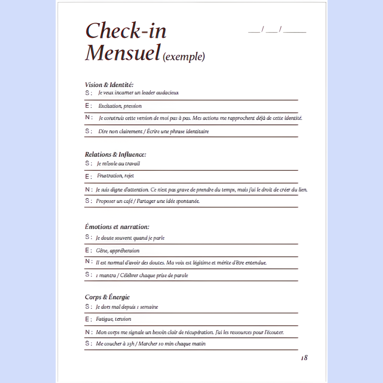 Chaque mois, tu observes ce qui a changé dans ta vie — sans jugement.